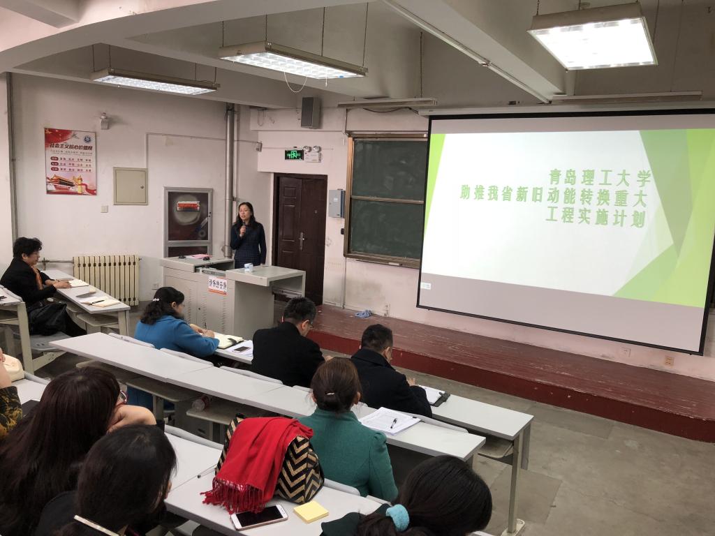 人文与外国语学院院长巩湘红传达了《青岛理工大学助推我省新旧动能转换重大工程实施计划(3月12日征求意见稿)》的指导思想、目标要求、任务举措等,引导学院全体教职工积极投身到学校“十三五”事业发展规划和综合改革工作中,结合专业特色,助推我省新旧动能转换重大工程。