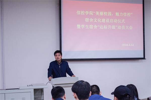 4月12日,信息与控制工程学院“美丽校园,魅力信控”宿舍文化建设启动仪式暨学生宿舍“达标升级”动员大会在嘉陵江路校区主教学楼二楼西报告厅举行。党总支书记董典同、党总支副书记曲良波、全体学生工作干部和各班班长、团支部书记、学生会(自律会)部长以上学生干部参加会议,会议由辅导员李晓辉主持。