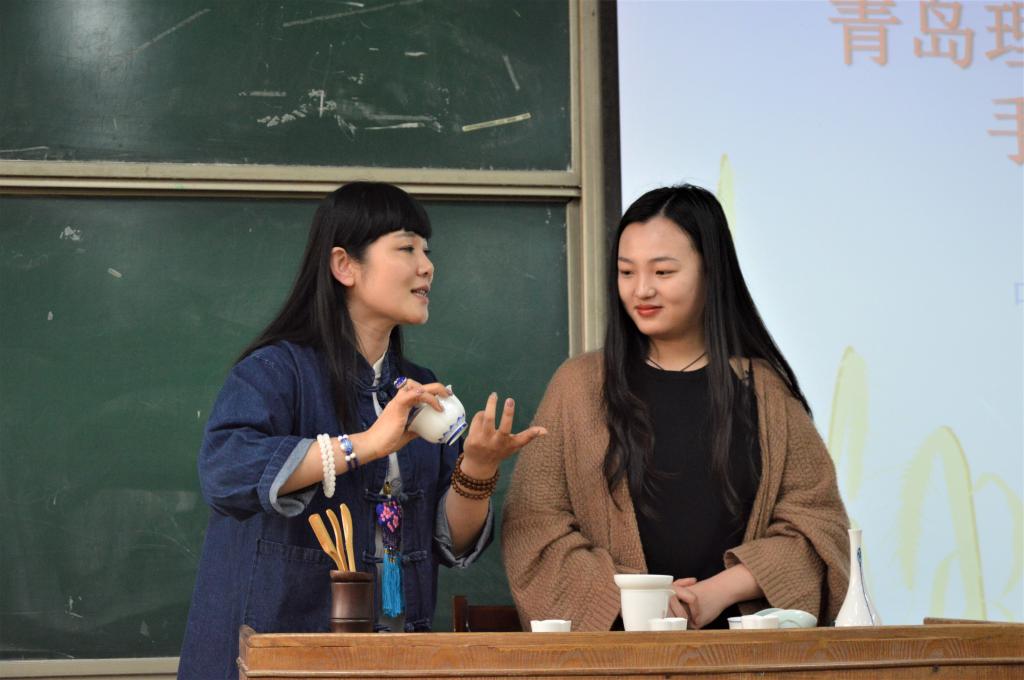 “矮纸斜行闲作草,晴窗细乳戏分茶”,品茶自古以来都是一桩雅事。茶的历史悠久,源远流长;茶艺更是博大精深,意蕴深长。为了让同学们更好地感悟茶道文化,4月25日汉语言文学专业教研室主任张成福老师特邀青岛宁静春晓民族艺术学校校长、青岛市手工艺协会西海岸新区分会副秘书长、晓宁公益组织负责人崔晓宁女士来到长江路校区主讲了一堂以“中国茶艺介绍与展演”为主题的手工艺公开课程。