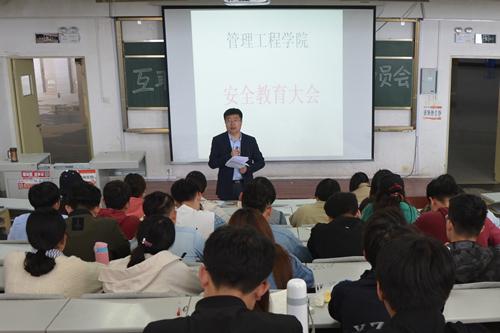 5月4日下午,管理工程学院于二教阶202举办了管理工程学院安全教育大会。党总支副书记于利俊,辅导员邹佳欣、马小童,院学生会代表、办公室助理员代表、新闻中心代表以及各班班长、团支书参加会议。会议由于利俊主持。