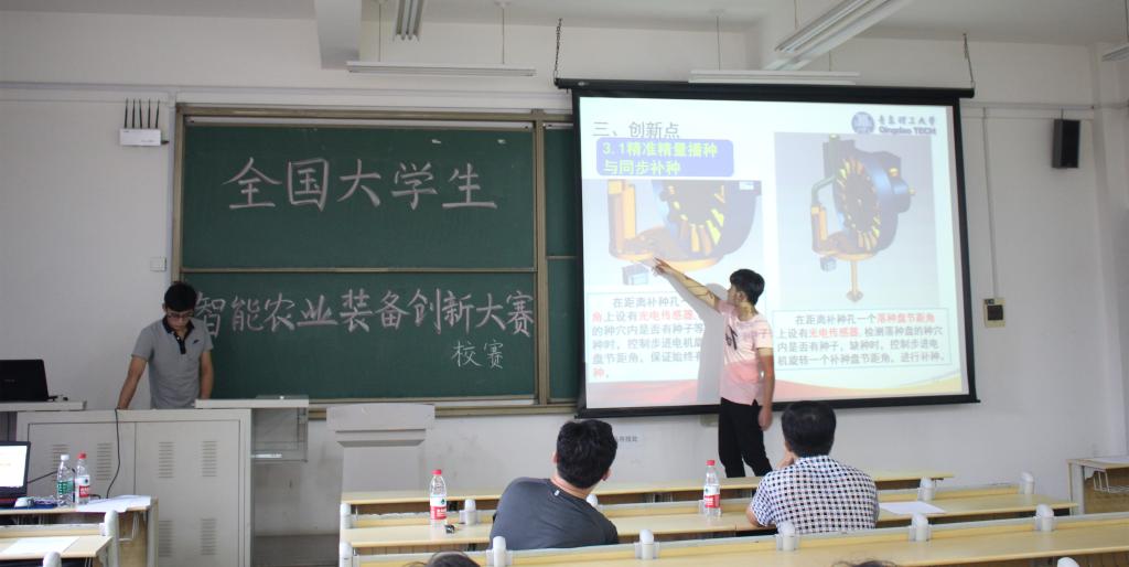 9月12日下午,我校“智能农装、创新未来”主题全国大学生智能农业装备创新大赛校赛于主教学楼B327成功举办。本次校赛由机械与汽车工程学院承办,机械与汽车工程学院副院长杨勇、团总支书记隋学智、专业教师邹旭东、杨发展作为评委对作品的现场评审及打分。