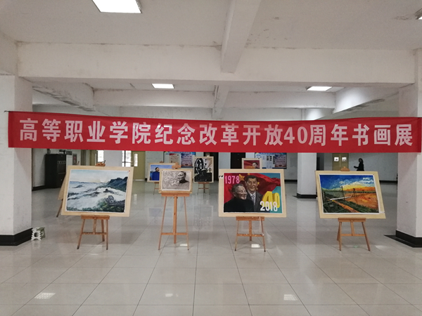 为了认真贯彻落实党的十九大精神,纪念改革开放40周年,10月25日,高等职业学院在长江路校区2教一楼大厅开展“纪念改革开放40周年书画展”活动。