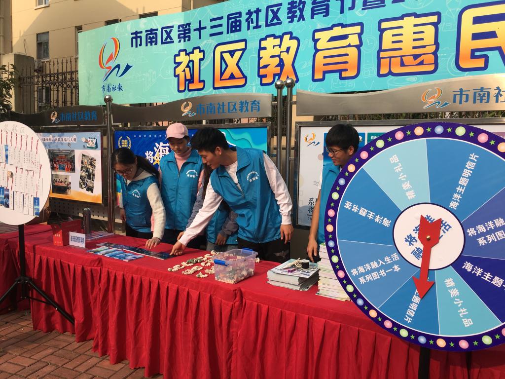 10月24日,以“全民学习新征程 时尚幸福蕴市南”为主题的市南区第十三届社区教育节暨2018年全民终身学习活动周的启动仪式在青岛市南区八大峡街道办事处举行,我校环境与市政工程学院志愿团队参加并进行海洋知识宣传活动,现场反响热烈。