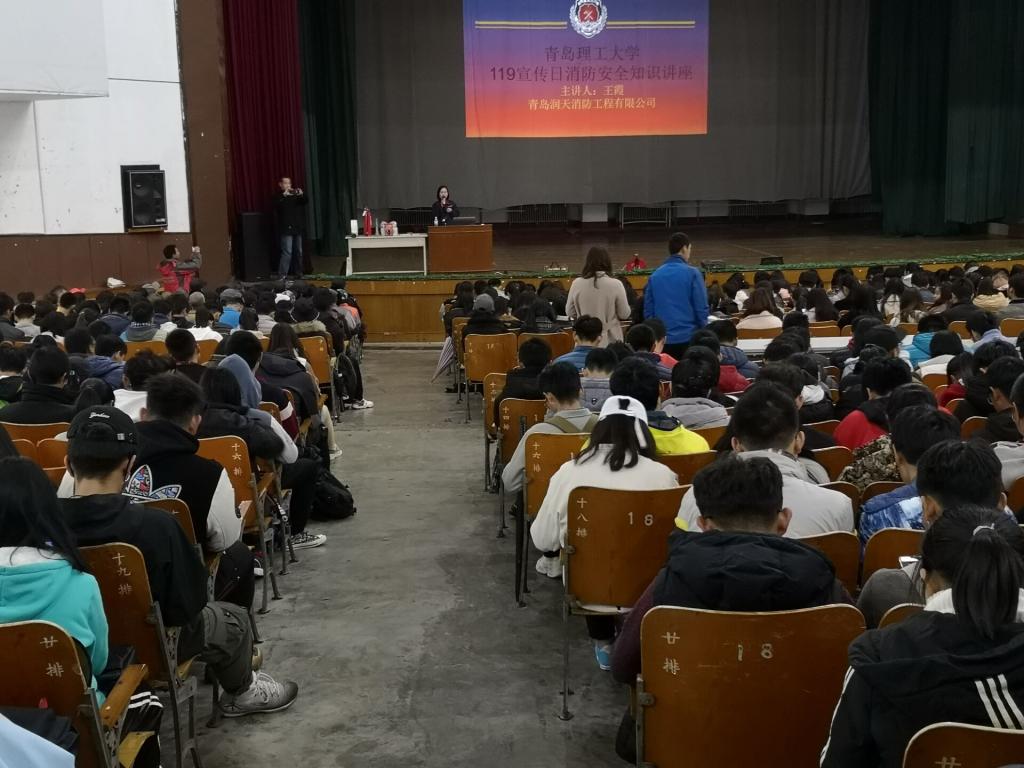 为了进一步提高我校师生员工的消防安全意识,普及消防安全知识,增强自防、自救、逃生等应急能力,树立“消防安全,人人有责”的意识,在“119消防安全宣传日”到来之际,我校长江路校区特邀请青岛润天消防工程有限公司工程师王霞来校做消防知识讲座。讲座于11月8日下午16:00在长江路校区科学会堂举行。长江路校区各学院辅导员、学生干部、大一新生宿舍舍长、高年级学生代表、实验室消防管理人员、公寓管理人员、物业公司人员、安保公司人员到场听取讲座。