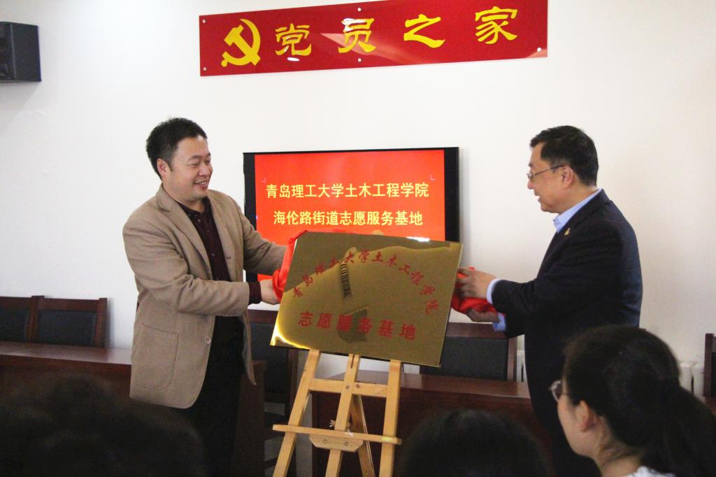 揭牌仪式开始,尹书浩、邵先锋分别致辞。尹书浩指出,青岛理工大学土木工程学院海伦路街道志愿服务基地的揭牌,让大学生进街道、进社区参与志愿服务活动,既能增强自身的综合素养能力,又能弥补街道、社区服务的不足,是助力街道、社区建设的重要共建资源。邵先锋说,海伦路街道志愿服务基地的揭牌,开启了一扇让大学生了解社会、熟悉社会、服务社会的重要窗口,将会与社区一起开展好大学生志愿服务工作,把服务社会、奉献社会的精神印在心上,落实在行动中。随后,尹书浩与邵先锋共同为志愿服务基地揭牌,大家一起合影留念。会议结束后,媒体对部分青年志愿者进行采访。“非常高兴土木工程学院与海伦路街道成立志愿服务基地,今后我们将积极参与街道社区志愿服务活动,在弘扬‘奉献、友爱、互助、进步’的青年志愿者精神中展现大学生风采,用我们的实际行动去服务社会。”青年志愿者李庚辰的现场感受,得到参与活动师生的一致认同。