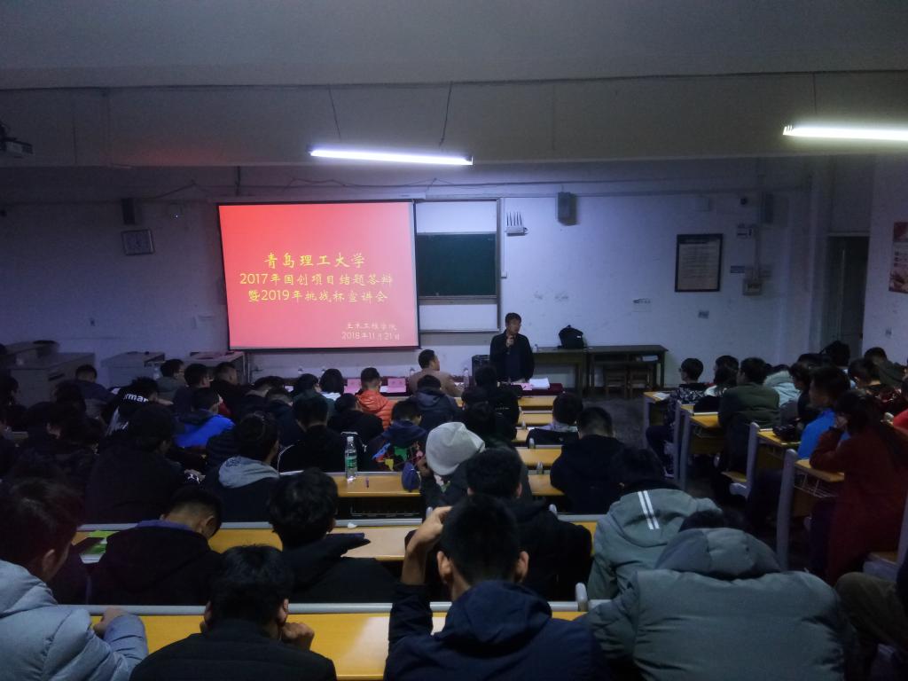 为更好的指导学生参与创新创业项目,积极培养大学生的创新创业意识,11月21日,土木工程学院于一教一阶成功举办“2017年国创项目结题答辩暨2019年挑战杯宣讲会”。学院院长苗吉军、党总支副书记邵先锋、时伟教授、祝英杰教授、马衍轩副教授担任评委,答辩会由副院长李绍纯主持。