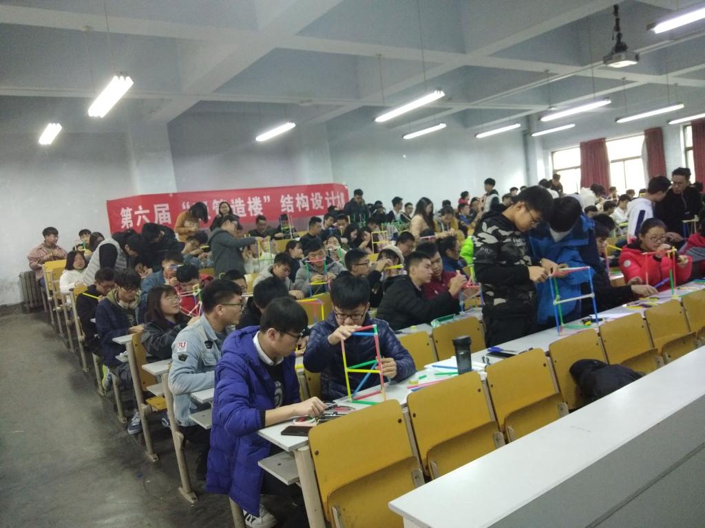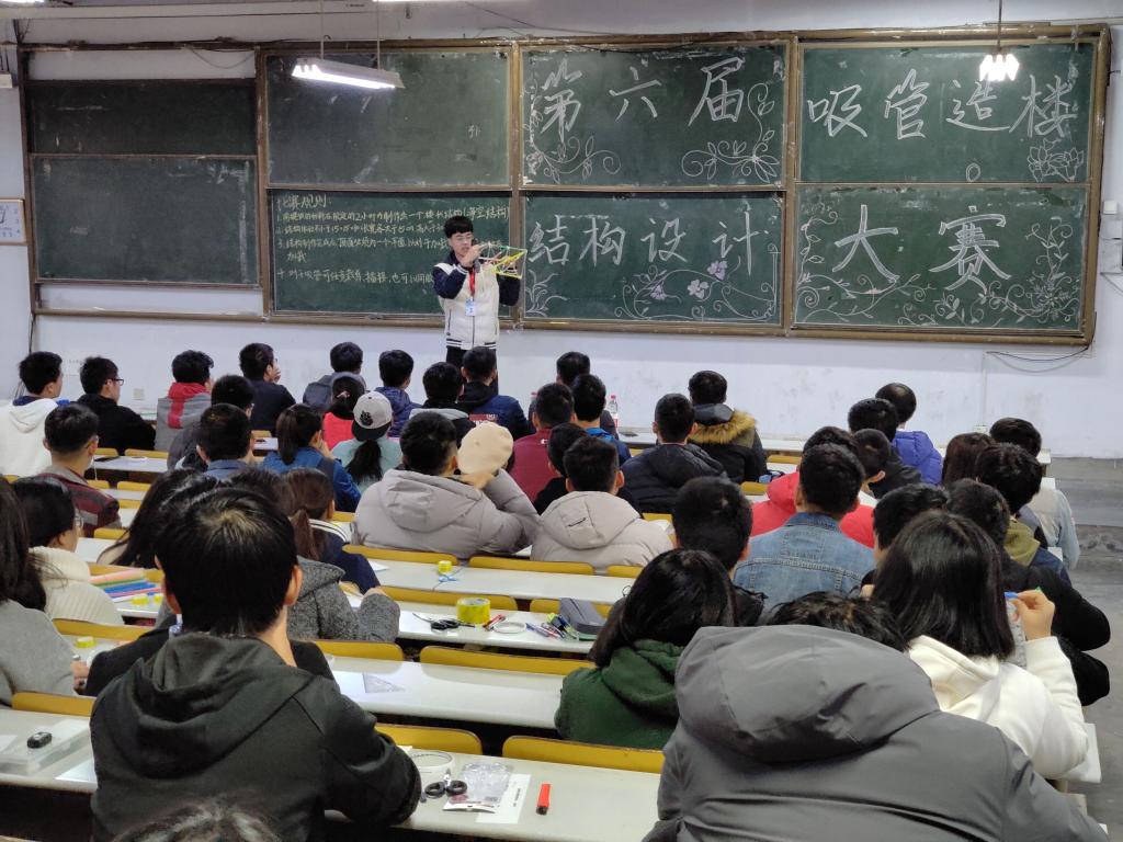 为了培养大学生的团队意识和动手能力,激发同学们创新意识和增强实践技能。11月24日,土木工程学院结构设计爱好者协会于一教200阶成功举办第六届吸管造楼结构设计大赛,共有来自全校80余组队伍、200多人参加了本次比赛。
