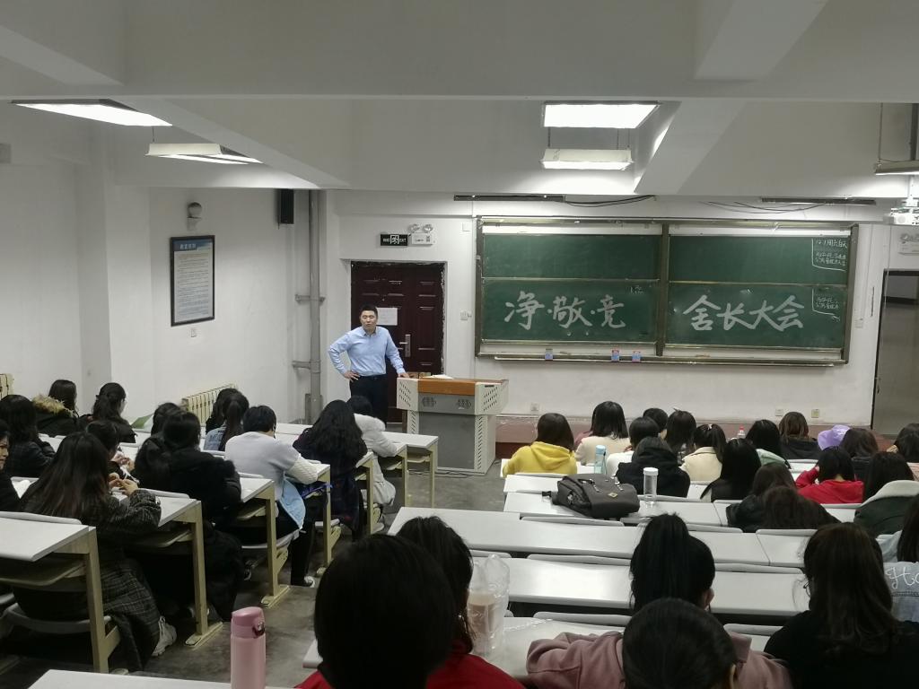 为进一步加强商学院宿舍管理和学风建设,营造互帮互助同进步的学习风气,提高学生自我管理能力,11月28日晚,商学院在2教阶204举行“净舍风·敬班风·竞学风”2017级全体舍长大会。2017级辅导员敬树勇,2017级全体学生干部、宿舍舍长参加本次会议。