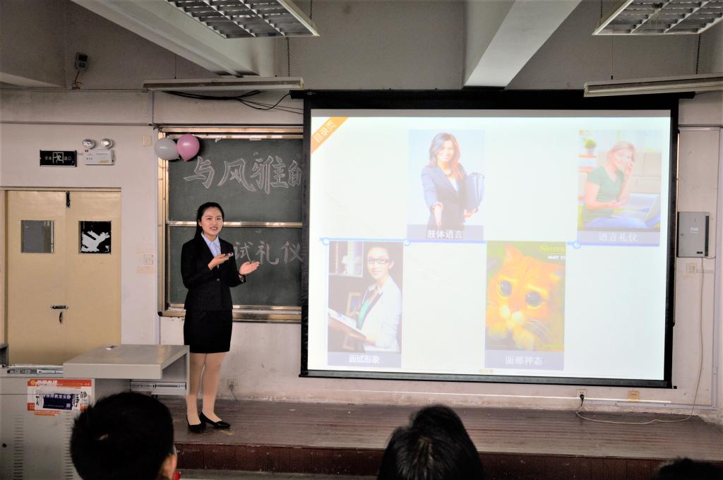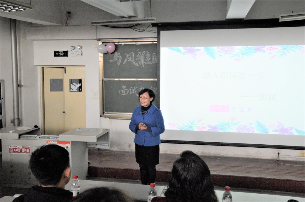 为了帮助在校大学生更好地了解企业面试礼仪的相关知识和职场礼仪等方面的技巧,展示良好的职业形象,提高竞争力,11月28日14时,人文与外国语学院学生会礼仪协会在二教阶201举办“踏出人生第一步”面试礼仪活动。山东省演讲学会常务理事、山东省演讲学会青岛代表处主任、青岛市演讲与演唱协会副秘书长于宝真,山东省演讲学会理事、青岛市公务员面试考官、人文与外国语学院汉语言文学副教授潘玲和辅导员马松参加此次活动。