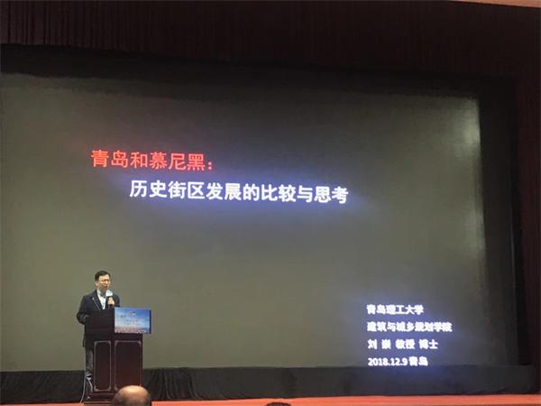 为助力青岛历史城区的保护与发展,进一步推动相关规划、建设、管理方面的国际合作与交流,促进中德两国在相关领域的长期交流合作,在青岛市城乡建设委员会、青岛市规划局的指导下,由青岛市勘察设计协会、中德合作交流协会共同主办的“2018中德历史城区保护与可持续发展青岛论坛”于12月8日、9日在青岛市八大关小礼堂举行。我校建筑与城乡规划学院徐飞鹏教授、于红霞副教授等师生代表参加此次学术论坛。
