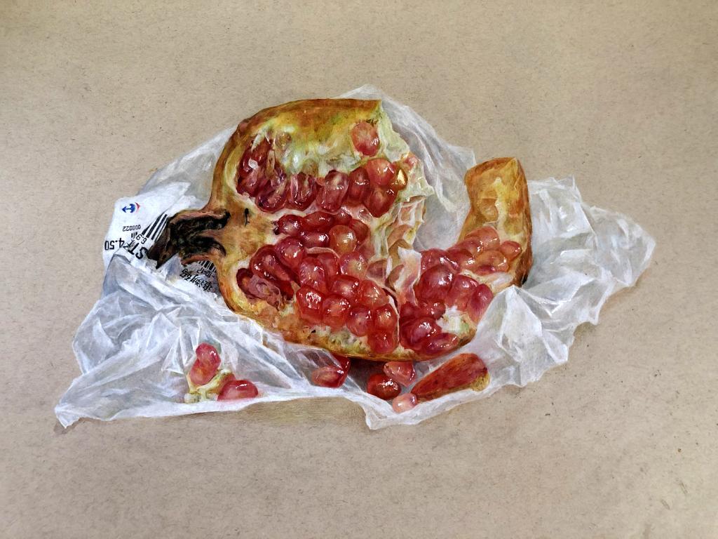 基础课老师蓝青、南彩虹、康宁介绍说:“精微素描”对于同学们不仅仅是细致刻画和技巧的罗列,她更是一种观察方式和思考方式的阐述,进而发展成为用“心”的表达。老师鼓励学生选择那些触及内心的食材——厨房里妈妈做的家常味道;陪伴同学度过联考岁月的零食;自己家乡特有的美味;娇艳欲滴的水果和甜品...市井百味最是感人。从这次写生的作品展可以看出同学们历时6周,投入了极大的热情和耐心,取得的成果也是让人欣喜的。