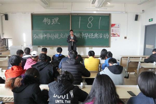 经典诗文是中华优秀文化的产物,是中华民族精神文明的组成部分,也是培育和践行社会主义核心价值观的重要渠道。为了进一步提高学生道德修养,弘扬中华优秀传统文化,培养学生爱祖国、爱家乡的情感,深入推进中华经典诗文诵读,12月20日,理学院在嘉陵江路校区举办“诵读中华经典 践行社会主义核心价值观”活动,党总支副书记刘聘参加本次活动。