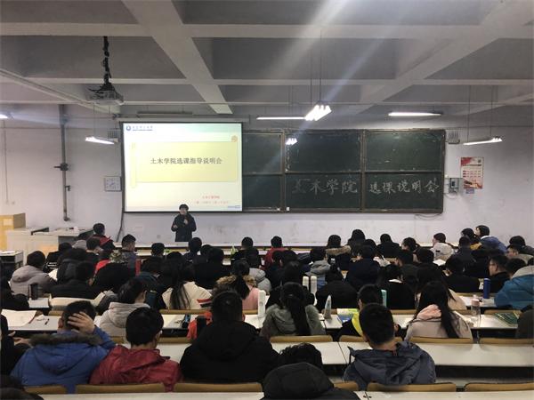 12月25日,土木工程学院于一教200阶、300阶召开2016级选课指导说明会。学院教学办公室教师房玉佩、范红云出席说明会,学院2016级全体同学参加。