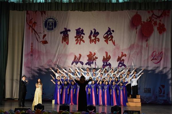 在改革开放40周年之际,为欢迎2018级新生并迎接2019年新年元旦的到来,12月26日晚,商学院在长江路校区科学会堂举办了“商聚你我从新出发”元旦迎新晚会。商学院院长王曙光,党总支书记王粲,副院长乐国林,副书记董兰国,以及学院专业教师、辅导员、班主任和近千名学生观看了晚会。