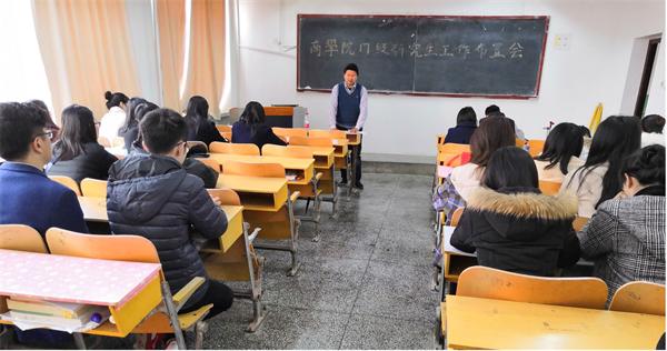 为进一步加强研究生的教育管理工作,帮助研究生明确学习任务和要求,3月14日下午,商学院在一号教学楼418教室召开2017级研究生学习教育会,商学院副院长乐国林、副书记董兰国、辅导员冯宁以及2017级全体研究生参加。