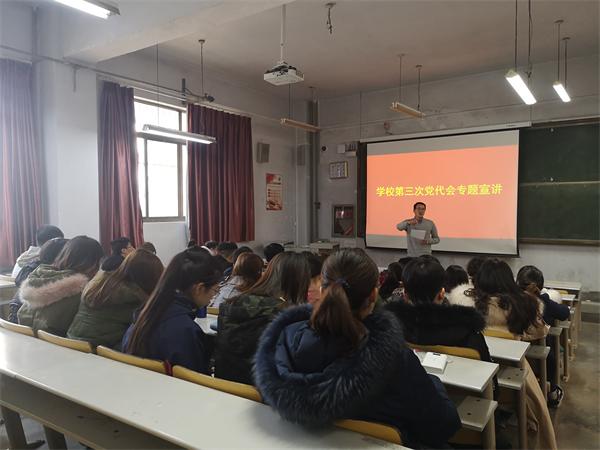 3月13日下午,建筑与城乡规划学院于市北校区一号教学楼102阶组织学生党员学习学校第三次党代会精神。学院学工办主任、分团委书记王鹏飞,辅导员杨霈宣、王明慧,本科生第一党支部全体学生党员参加会议。会议由党支部书记王鹏飞主持。