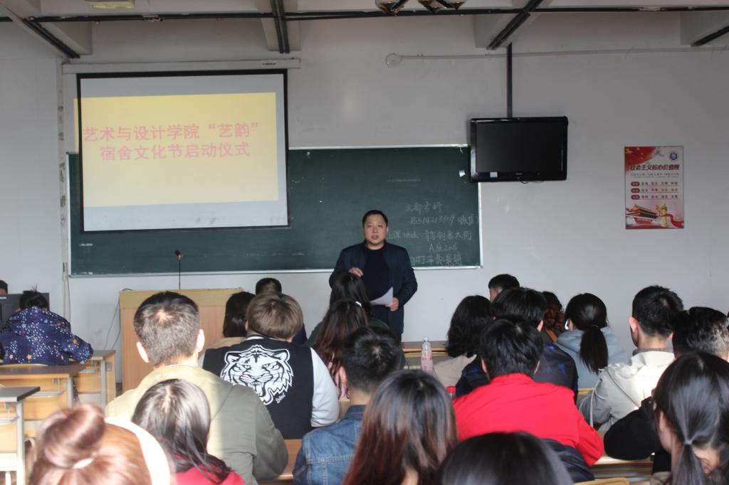 为提高同学们安全意识,营造健康整洁文明的生活学习环境,3月19日下午,艺术与设计学院在2教416举行“艺韵”宿舍文化节启动仪式暨“亮寝”洁净宿舍长效治理动员大会。学院党总支副书记徐佐君,辅导员舒文、王斐、刘芳兵及全体宿舍长参加会议。学工办主任、分团委书记王俊富主持。