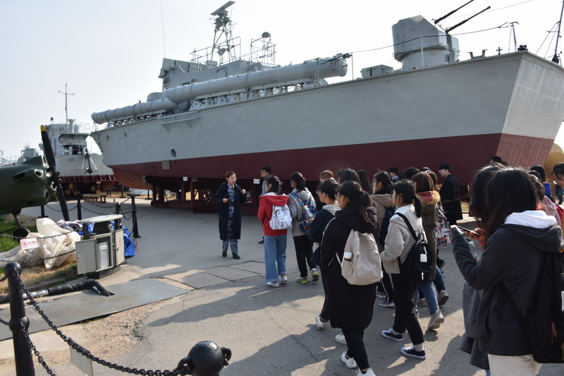 在海军博物馆武器装备展区,场馆解说员向同学们详细介绍了小型舰艇、飞机、导弹、火炮、水中兵器、观通设备、水中坦克等陈列武器的性能、作用及完成历史使命。同学们聚精会神地听解说员讲解并提出了自己的问题,积极地与解说员互动,领略了中国海军的无限魅力。随后,同学们又自行组织登上了驱逐舰以及导弹护卫舰,在舰船上瞭望海洋,切身体会并深入认识了人民海军的战斗历程和建设成就。参观结束后,同学们激动地表示:“虽然我们这次只参观了部分室外模型,但通过解读他们的历史,我们能清楚地感受到我国海军正大踏步前进发展,并为祖国感到骄傲!”