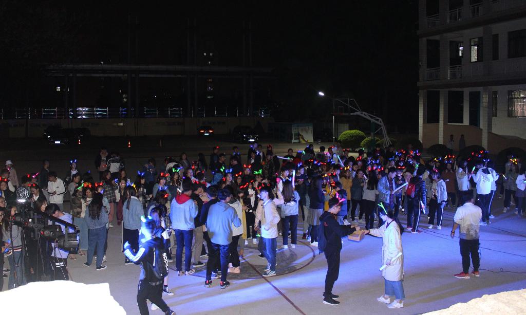 随后,同学们佩戴荧光手环和头饰,围绕一号教学楼开展了荧光夜跑活动,流动的光影点亮了理工大的夜空,点点荧光汇成了一条五彩斑斓的银河,形成一道道靓丽的风景线。跑步结束后又进行了同学们最心动的环节——抽取缘分卡,同学们抽取缘分卡,邂逅自己的有缘人,相约一起夜跑。