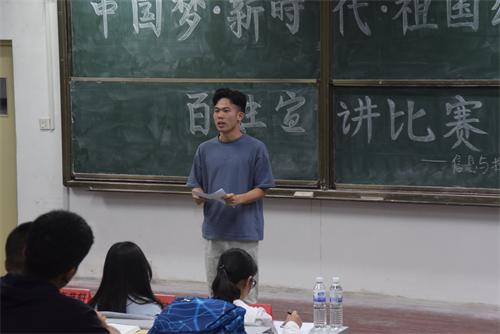 为持续推动习近平新时代中国特色社会主义思想和党的十九大精神往深里走、往实里走、往心里走,着力营造庆祝新中国成立70周年浓厚氛围,5月28日晚,信息与控制工程学院在长江路校区阶梯203教室召开了“中国梦·新时代·祖国颂”百姓宣讲选拔活动,学院辅导员高腾飞、逄超、孙海英、李健萍、高艺轩参加活动。