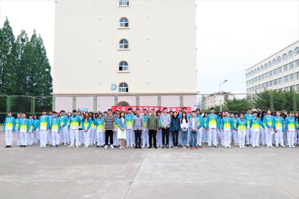 为丰富校园文化生活,增强学生身体素质,5月30日中午,人文与外国语学院学生会在长江路校区篮球场举办2019年广播操比赛。人文与外国语学院党总支副书记王振,分团委书记、学工办主任马松,辅导员陈刚、辛雪梅、贾舒文,学生会主席盛琳媛担任评委,18级全体学生参加。