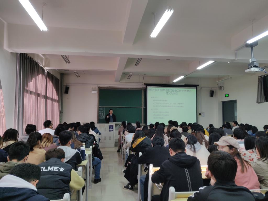 11月22日上午,人文与外国语学院在嘉陵江路校区主教学楼B233举行第66期新论语讲坛科研讲座,此次讲座由我校客座教授、山东大学哲学与社会发展学院博士生导师、系主任、教育部高等学校社会学类专业指导委员会委员高鉴国教授主讲,题为“社会工作实务理论的属性与特征”,讲座有社会工作专业教研室主任刘世颖主持,学院师生百余人参加了此次讲座。