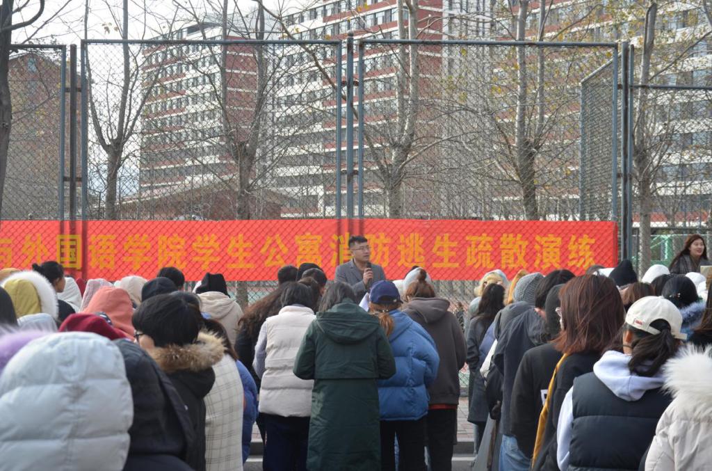 为进一步加强学院安全工作,加强公寓安全管理与公寓文化建设,增强学院师生消防安全意识,并掌握相应的火场逃生技能。11月27日下午,人文与外国语学院联合黄岛校区保卫处举办了消防逃生疏散演练。人文与外国语学院党总支副书记王振、辅导员陈刚、贾舒文,保卫处张正家以及学院各年级近400名学生参与本次演练。