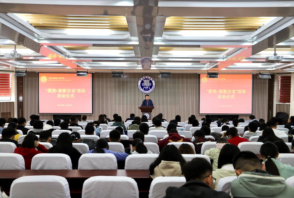 曲良波在启动仪式上讲话,他指出“信控•致新沙龙”将是一项长期的学术活动,其目的是建立增强师生交流、巩固专业知识、培养专业思想、活跃学术思维、促进原始创新的平台,弘扬敢于质疑、勇于创新、大胆探索的精神,为培养个人学术思想、阐述个人理论观点和激发个人学术灵感提供宽松、自由、平等的交流平台。学院每年将举行100场左右的学术交流活动,组织专家教授、青年教师和优秀学生开展灵活多样的学术沙龙活动,创造宽松和谐的学术氛围,满足不同年级和专业学生的专业需求,促进个人全面发展。希望师生齐心协力,都能在活动中有所提升,有所收获,提升学院的综合实力和办学水平。学院将为沙龙的发展提供必要的经费和场地等条件保障,也将积极邀请国内外知名专家和学者来学院交流,推进沙龙活动常态化发展,为大家提供向国内外专家学者、同行和学院内学科间学习交流的机会。