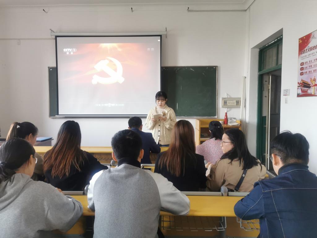 学生党员代表李朝霞带领大家一起学习了习近平总书记关于“不忘初心、牢记使命”论述摘编中第四章:坚定理想信念,始终是共产党人安身立命的根本。通过学习让广大党员坚定了对马克思主义的信仰,对社会主义和共产主义的信念,让党员认识到只有坚定理想信念才能提高站位、放宽眼界、开阔心胸、才能坚持正确的政治方向、经受住各种风险和困难的考验,永葆共产党人政治本色。