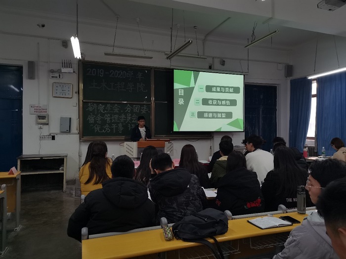 12月12日下午,土木工程学院于市北校区一教229教室举办本年度研究生会、分团委、宿舍管理委员会优秀干事评选大会。学院党总支副书记邵先锋,辅导员郑猛及研究生会全体成员参与。