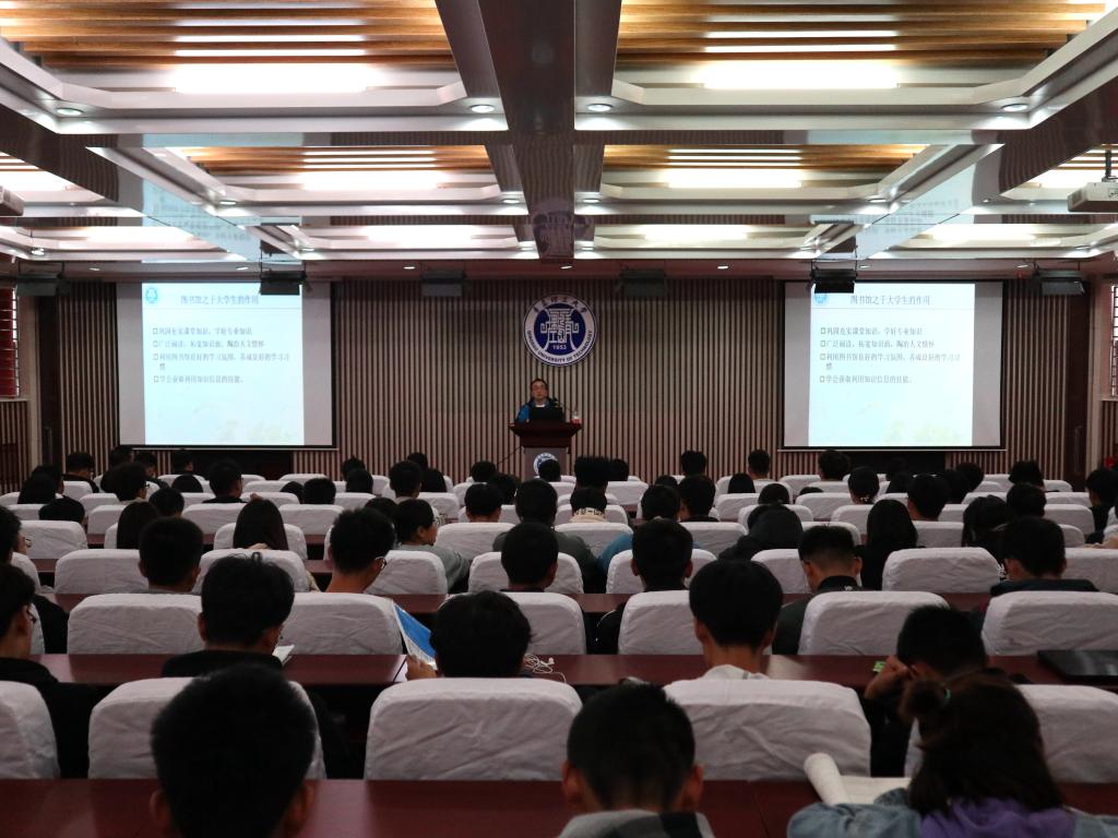 10月25日,理学院在嘉陵江路校区报告厅举办“如何利用大学图书馆”专题报告,我校图书馆信息部主任、副研究馆员贾芳华主讲。党总支副书记刘聘、分团委书记李晓辉和学院2019级全体学生参加了报告会。