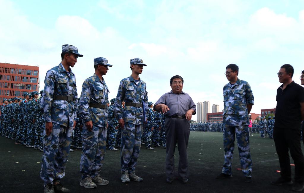 为充分了解学生军训的整体情况,鼓励学生与教官积极完成各项军训任务,9月15日,理学院院长于进伟、党总支书记邹传波、党总支副书记刘聘及学院办公室主任李明珠在军训场地亲切慰问了负责理学院军训任务的全体教官与参训新生。