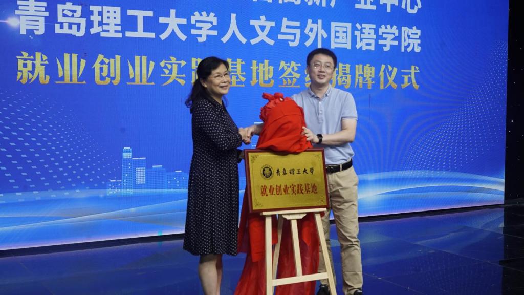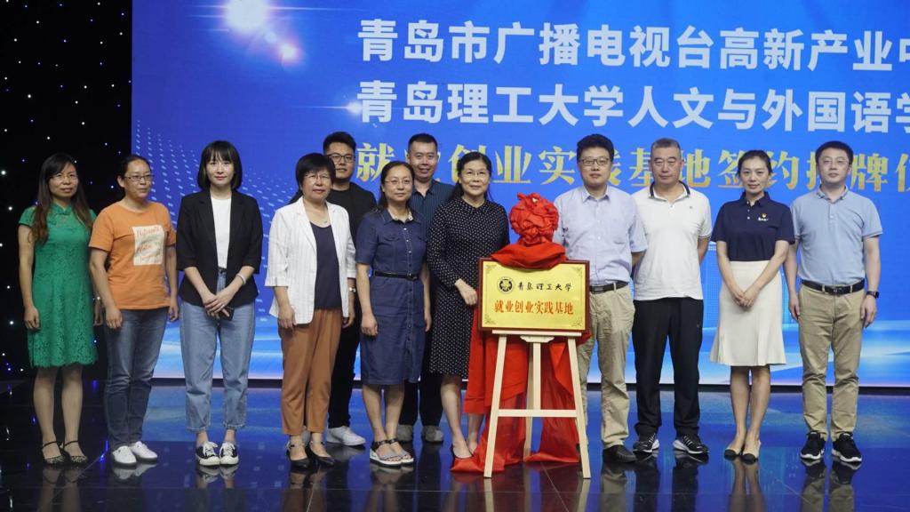 随后,人文与外国语学院党总支书记王新与青岛市广播电视台高新产业中心大数据研究院主任胡亚龙签订就业创业实践基地、实习基地合作意向书,并共同为基地揭牌。