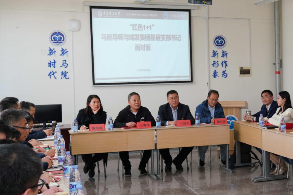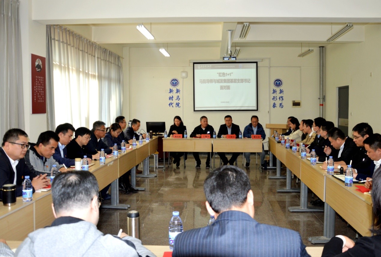 为贯彻落实新时代国企党建工作的新要求,探索企业基层党建工作新模式,11月4日下午,青岛城发投资集团有限公司14名基层党支部书记来访青岛理工大学马克思主义学院,与马克思主义学院结对子的“红色1+1”导师,开展面对面交流活动。马克思主义学院党总支书记王菁华主持会议并讲话,马克思主义学院院长陈国庆、副院长华章琳及相关教师参加会议。座谈会上,双方围绕国企党务培训、党建实践创新及党建与业务相融合等问题进行深入地交流和研讨。