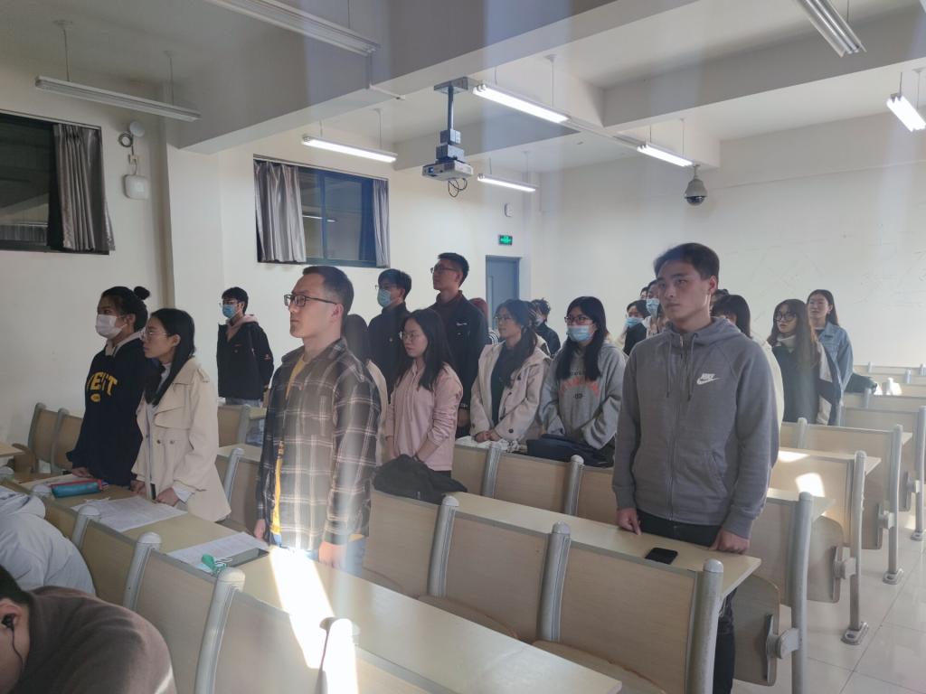 11月6日下午,理学院学生党支部在嘉陵江校区主教学楼B303教室举办“致敬伟大抗疫英雄,弘扬伟大抗疫精神”主题党日活动。