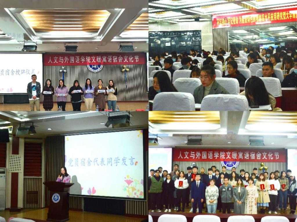 陈刚为18个党员宿舍授牌、扎西央宗为7个免检宿舍成员授牌,党员宿舍代表朝语181班王然和免检宿舍代表英语201班苏家琳分别上台发言,她们由卫生、学习、文明、榜样示范四个方面亮出身份清楚表态,要为周围同学带好头,全力做好学院文暖寓语公寓建设,勇于展现人外学子公寓文明风貌,获得在座学生的阵阵掌声。