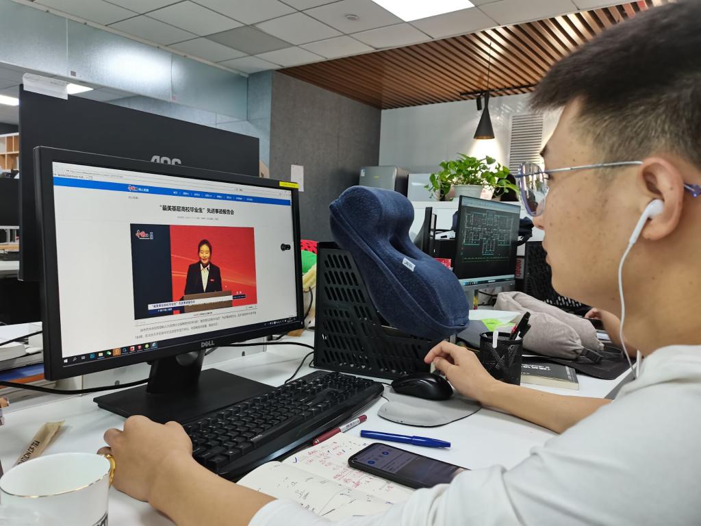 线上聆听报告会的毕业生们纷纷表示,“最美基层高校毕业生”放弃城市优越环境,选择到基层一线工作,在为民服务中实现个人价值,是新时代大学生学习的榜样。毕业生王轶凡说到:毕业以后也会考虑选择到基层、到祖国最需要的地方建功立业。