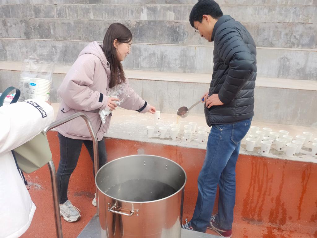 11月29日,信息与控制工程学院在学校东操场举办2020级新生趣味运动会。由于新生活动较为密集,此次趣味运动会时间安排靠后,时值初冬,当日气温达零下3度,严寒的天气和呼啸的冷风,让活动的工作人员和参赛选手冻得手脚冰凉。荷园餐厅关经理了解到相关情况后,主动安排后厨免费帮忙熬制了红糖生姜水,为同学们暖暖身预防感冒,这令学院师生倍感温暖。