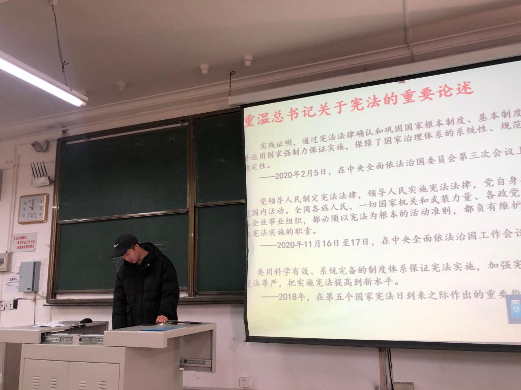 团日活动在各个团支部有序展开。活动中,各团支部以“深入学习宣传习近平法治思想,大力弘扬宪法精神”为主题,用通俗的语言、生动的案例向同学们普及关于宪法的知识,并带动班级同学集体学习了总书记关于宪法的重要论述,同时以小组的方式进行知识问答,让同学们能够以更轻松有趣的方式深化对“国家宪法日”的理解。