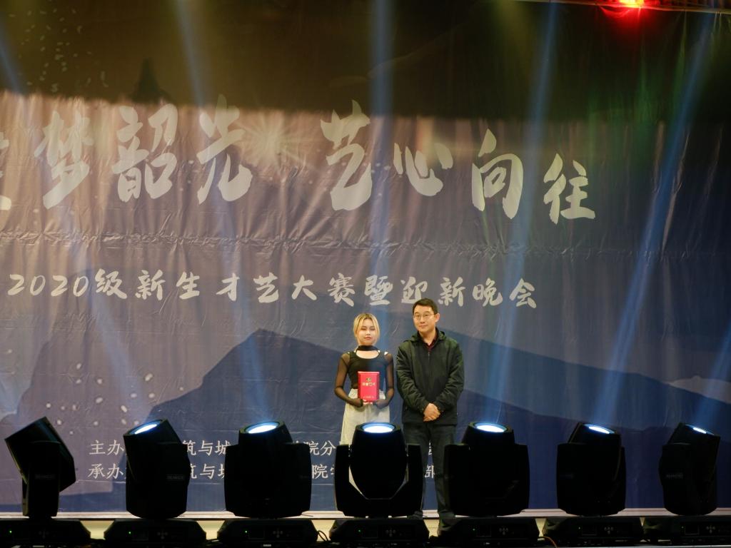 建梦韶光,奏响青春礼赞;艺心向往,璀璨学子风采。近日,由建筑与城乡规划学院分团委、学生会主办,学生会文艺部承办的“建梦韶光,艺心向往”2020级新生才艺大赛总决赛暨迎新晚会在市北校区礼堂圆满落幕。校工会曹伟、艺术与设计学院王睿、土木工程学院孙宇、建筑与城乡规划学院大学生艺术团团长宋昊轩、艺术与设计学院文体部负责人何家怡担任评委,建筑与城乡规划学院20级全体新生参加,学院党总支副书记高江、学工办主任、分团委书记王鹏飞、辅导员刘超、杨霈宣、王明慧、郭轶群、张宇、郑润琪到场观看。