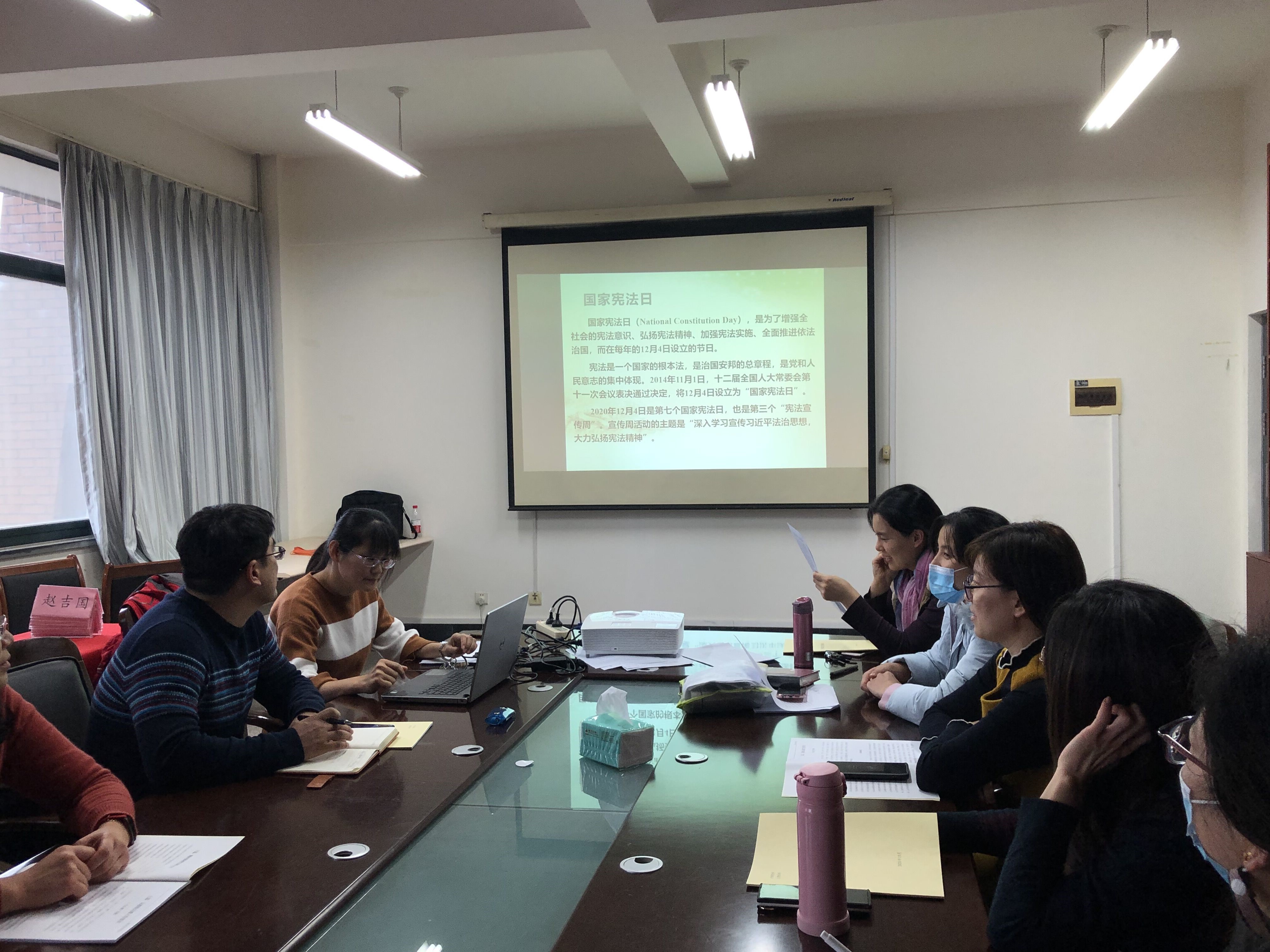 为深入学习贯彻党的十九届五中全会精神,推动深入学习宪法和法律,弘扬法治精神,理学院公共数学党支部于12月9日在嘉陵江校区A414围绕“深入学习宣传习近平法治思想,大力弘扬宪法精神”这一主题开展“2020年国家宪法日、宪法宣传周、法治宣传教育月”主题宣传活动。