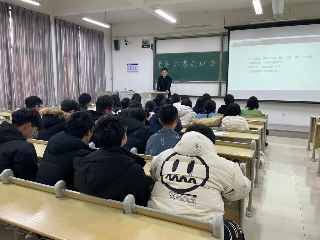 为了做好期末学生工作,进一步落实学院班主任会议精神,加强学风建设、疫情防控、安全稳定、考风考纪教育等方面工作,管理工程学院所有班级召开“加强学风建设,保障安全稳定”的主题班会,会议由各班班主任主持,各班级全体同学参加。