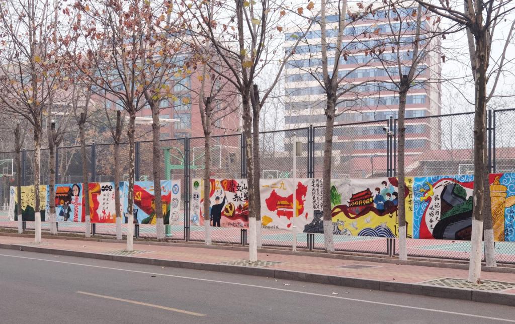 清晨的微光洒在操场上,刺骨的凉风吹不灭同学们心中的爱国热情。各院学生分工协作,打底稿,涂颜料,专注投入到绘画中,用画笔传达出对祖国浓浓的爱意。百年前,青年大学生为了祖国的未来勇敢担当奉献,莘莘学子更应学习这种精神,面对新时代的严峻挑战努力学习报效社会。