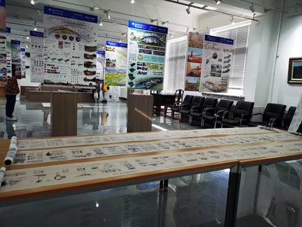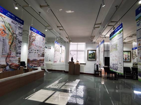 踏入展厅首先映入眼帘的是2017级环境设计专业《综合设计Ⅲ》课程展板与方案展示视频。此次《综合设计Ⅲ》课程主题紧扣国家发展战略,以“美丽乡村建设”为出发点和落脚点,充分发挥专业优势,利用专业知识从规划与景观设计角度为建设美丽乡村提出方案与策略。